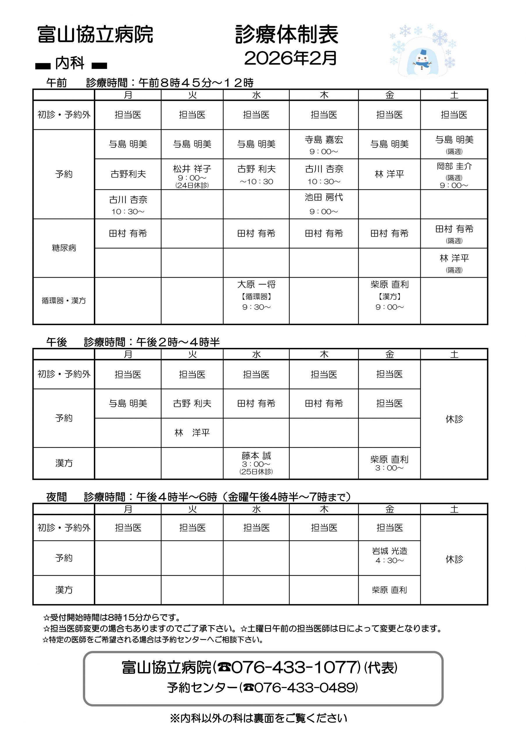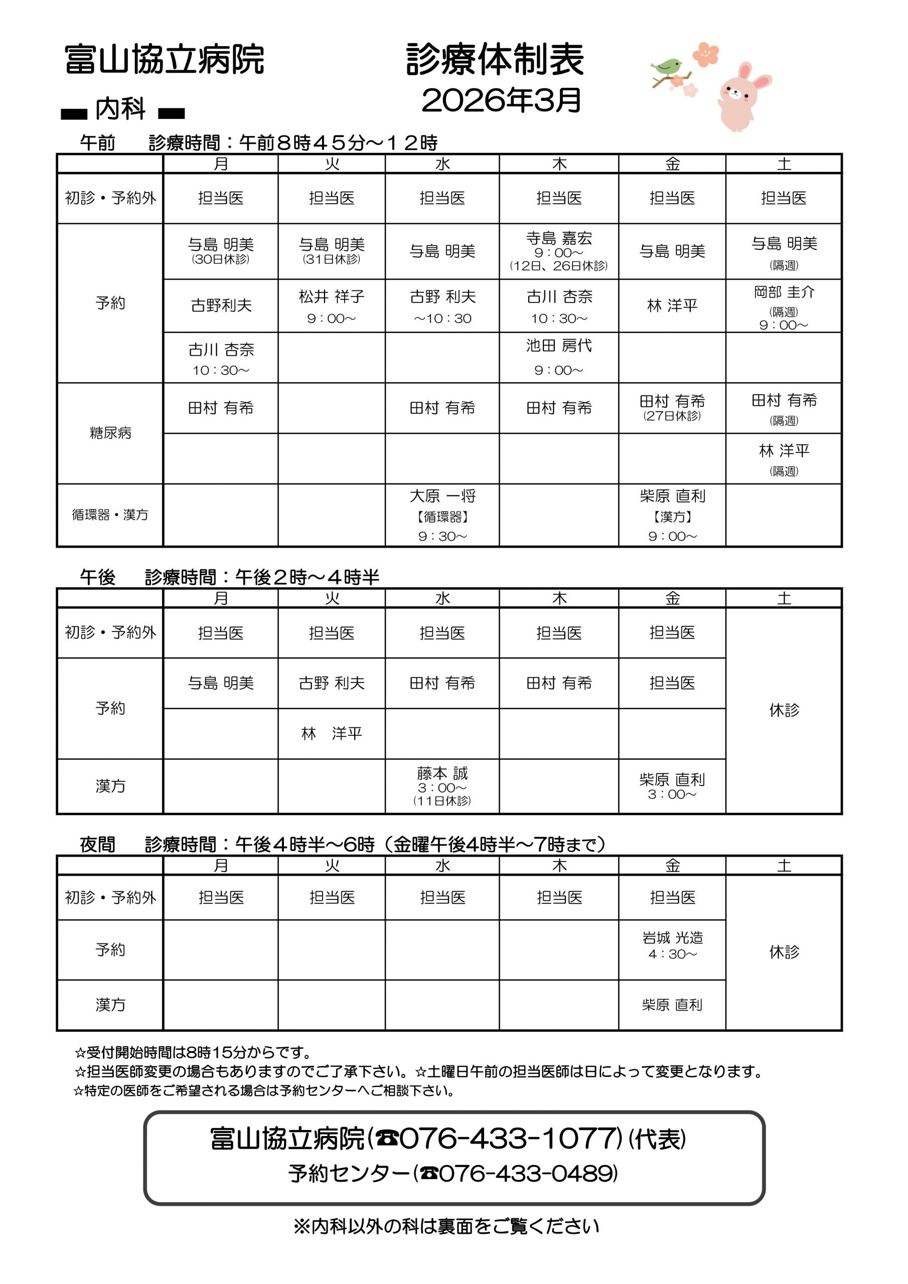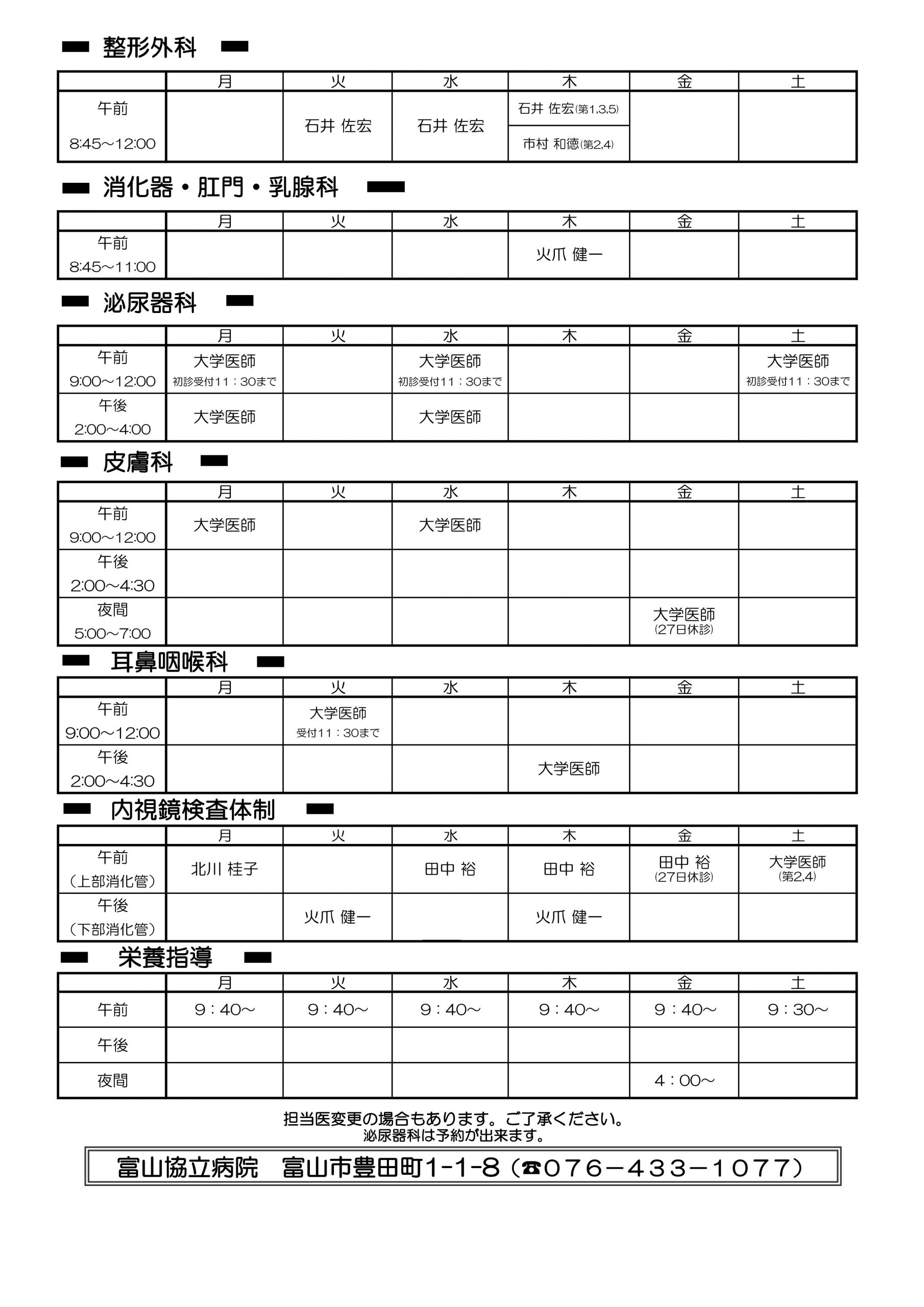 TOPページ 外来診療体制表